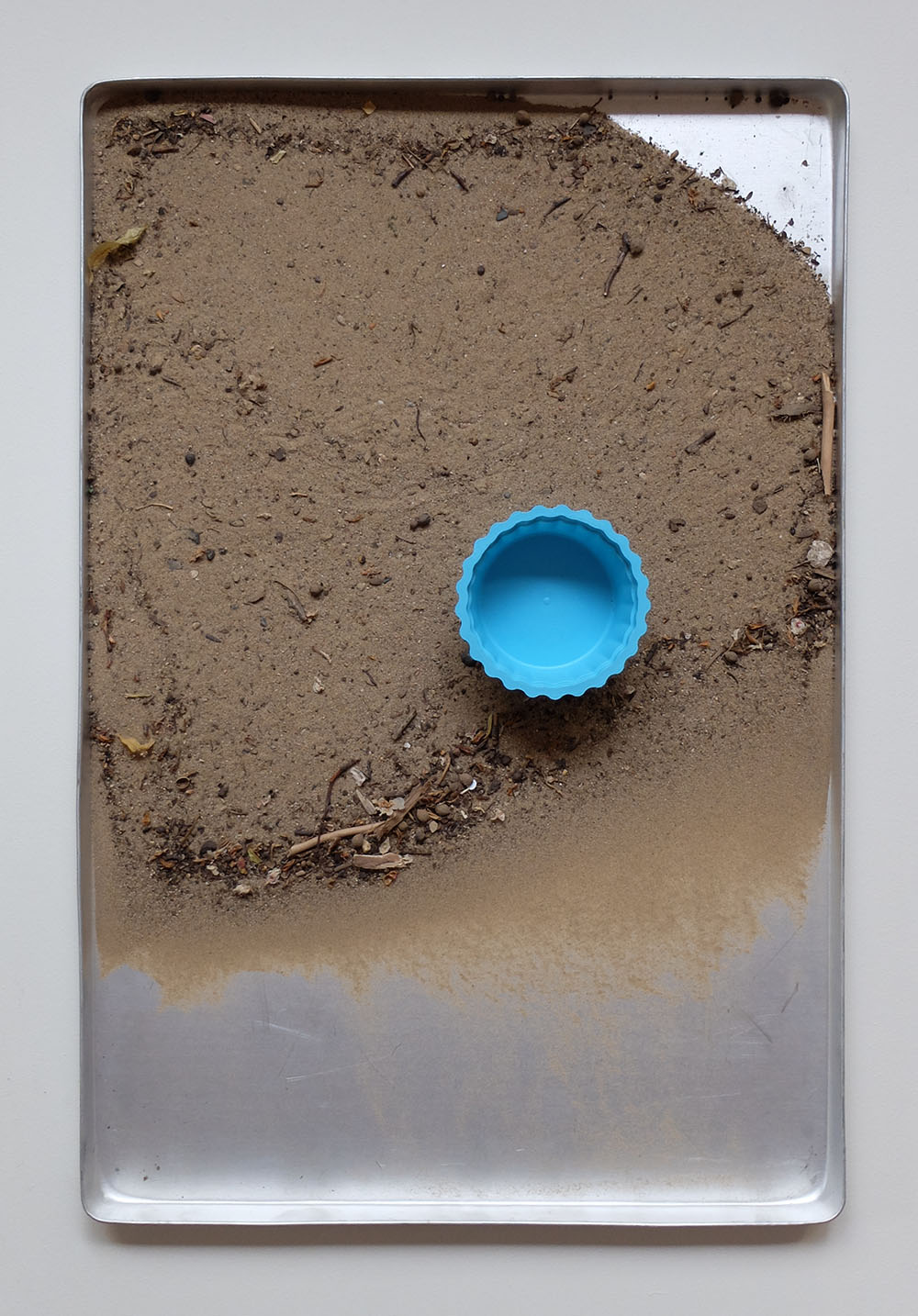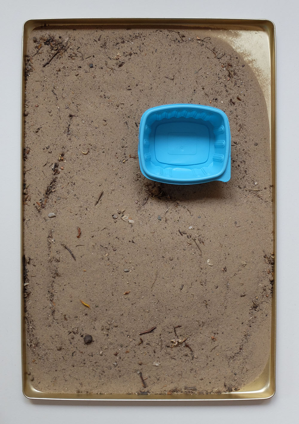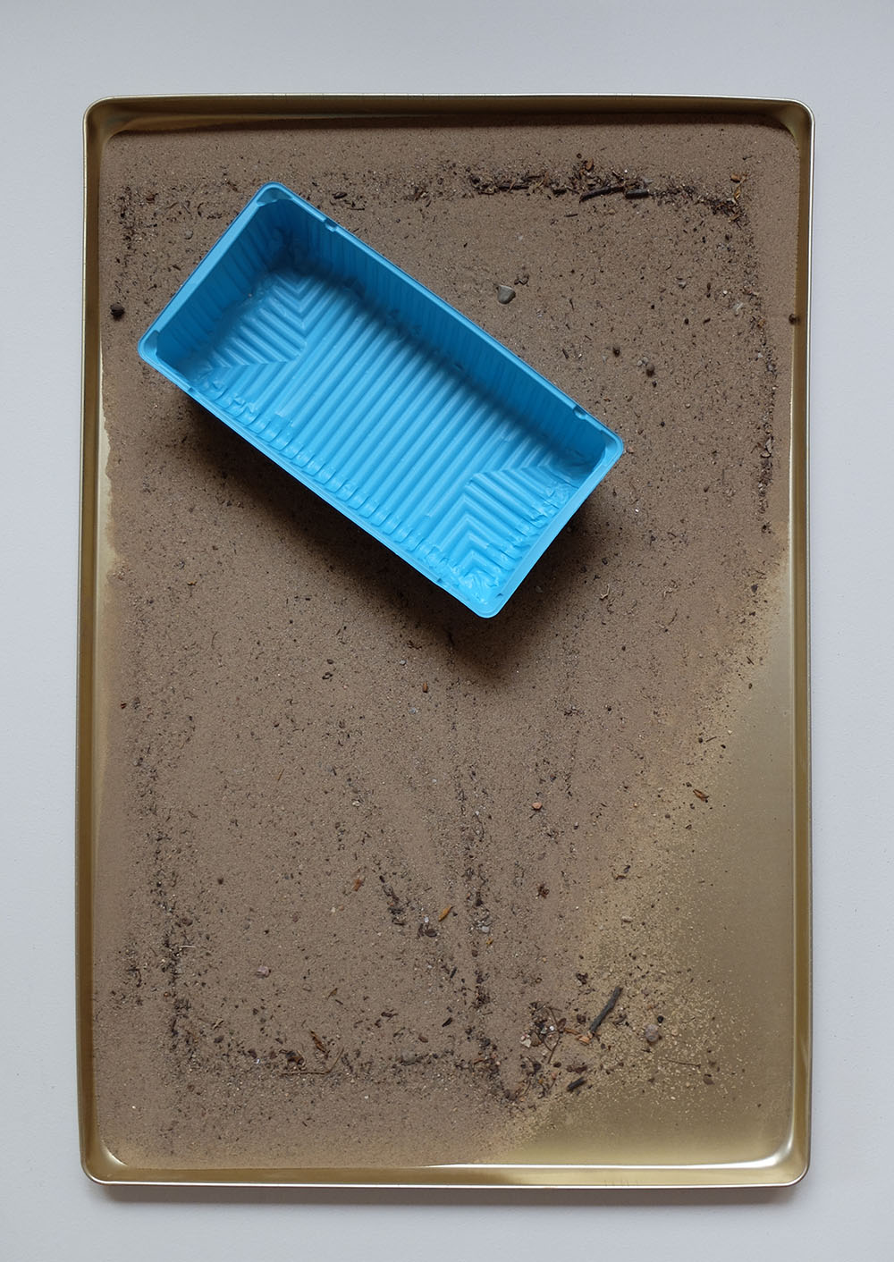 Baking trays, sand, plastic food containers, acrylic spray paint