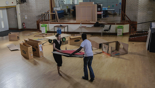 self-care within the everyday. Modular cardboard spaces look at the concept and practice of dwelling. Curated by Barbara Rodriguez Muñoz, Errol Francis and Beth Elliot. As part of Gasworks Artist Residency, London 2014