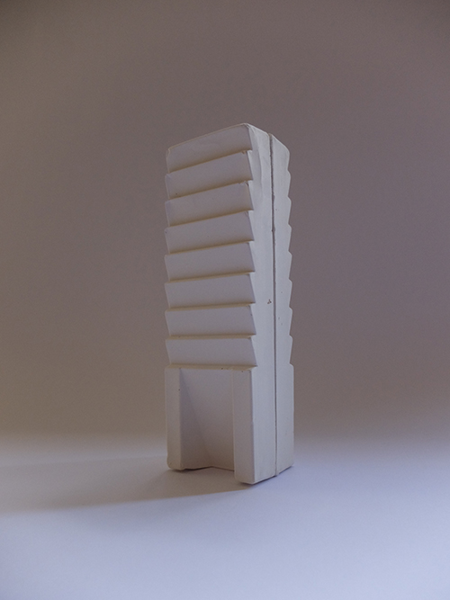 I used single-use plastic food containers as molds to cast plaster shapes, creating a range of reliefs and three-dimensional forms that resemble architectural components. Assembled together, they become city dioramas—miniature models that propose new topographies of forms for our lived environment.